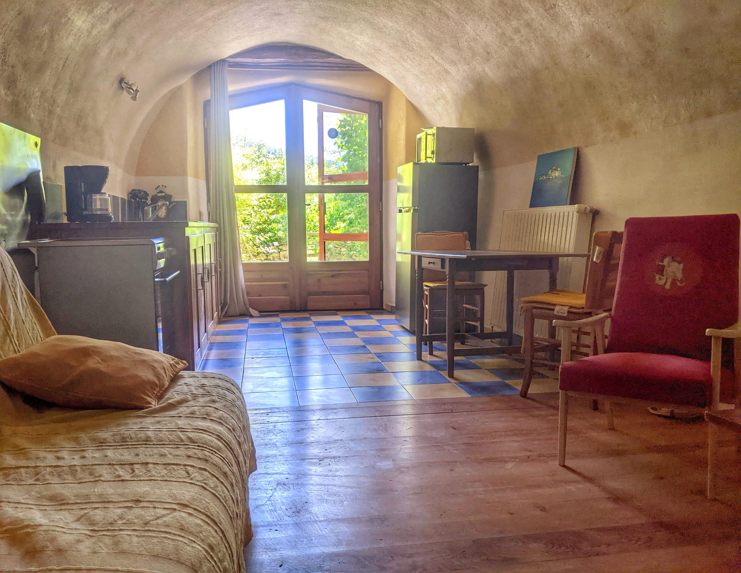 Le petit appartement, logement autonome, à l’extrémité sud de la maison, avec sa terrasse